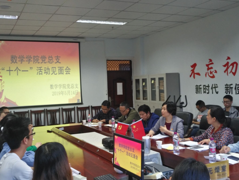 按照学校党委组织部的统一安排,积极推进数学学院“十个一”活动的顺利开展。5月14日晚上7:00,数学学院党总支在硕勋楼11楼会议室举行了“十个一”活动的见面会。党总支书记杨惠敏主持,王玲校长、院长办公室主任顾晓明、审计处综合科科长彭凌、数学学院院长王雄瑞、以及相关领导、教师、学生参加见面会。