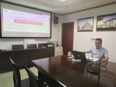 6月19日上午,机关第一党总支全体党员在办公楼八楼召开党员大会,党委办公室副主任刘明海为全体党员上题为“‘战疫’烽烟凸显新中国制度优势和责任担当”专题党课。