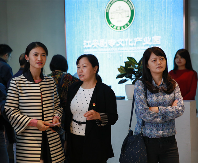 最后,经济与管理学院教师一行参观了集文化、教育、科技、游乐等产学研于一体的文化剧专产业园,通过产业园副总经理冯琳的介绍及观看规划视频,大家了解到产业园项目建成后,将包含剧专艺术学院、微电影孵化园、剧场和影院、影视基地等诸多功能元素,是一个集小学、中学、大学一条龙的新型业态文化教育产业园。崔风暴教授就产业发展、课题研究、人才输送等问题同冯副总经理进行了深入交流,双方在文化旅游课题研究及在文化服务的实践中培养人才方面达成共识,期待可以进一步开展交流合作。