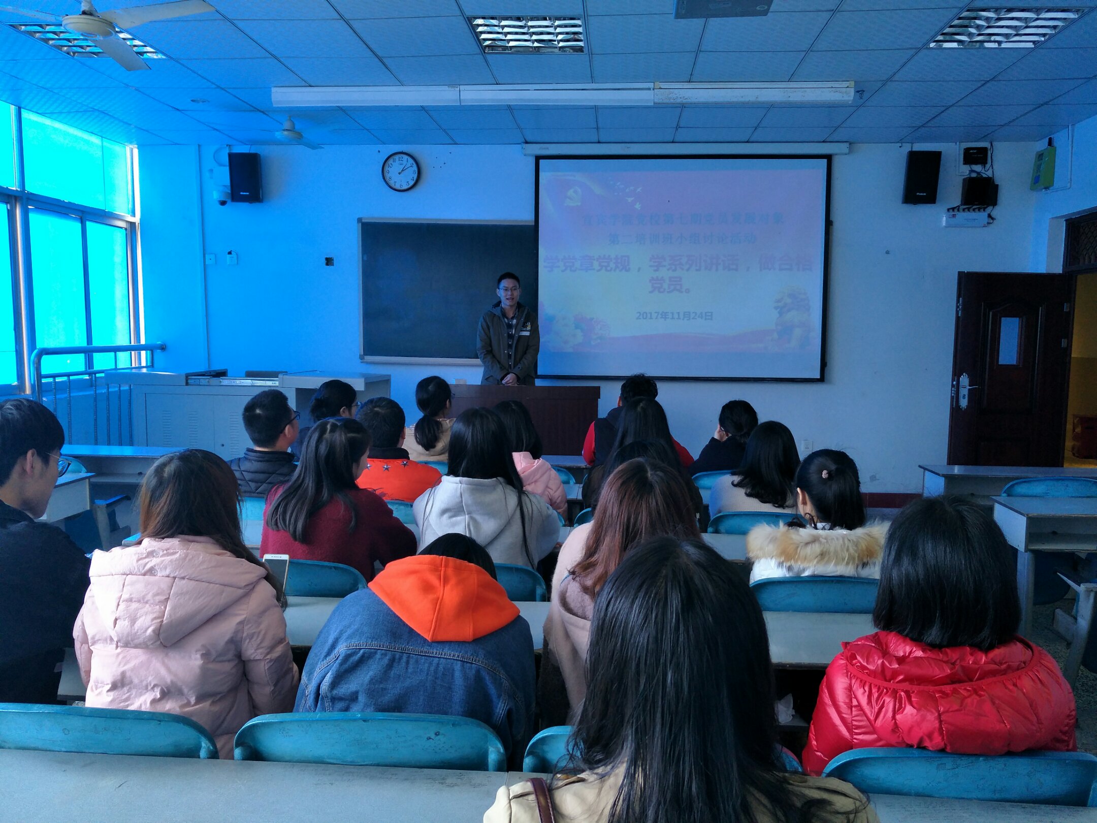 2017年11月24日中午,宜宾学院第七期发展对象生工学院小组组织了“两学一做”的主题活动。本次活动由组长王丹,副组长吕东霖组织并在三教608开展,此次活动的参与人员是生工学院第七期发展对象培训班全体学员。
