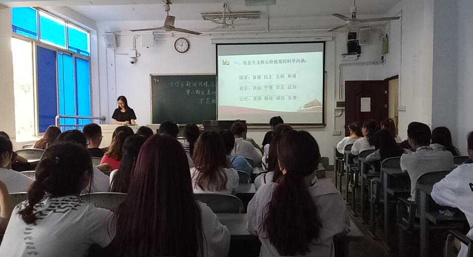 为了培育和践行社会主义核心价值观,培养社会主义事业建设者和接班人。文学与新闻传媒学院于2018年5月29日12:40在一教212组织全体第八期发展对象学员开展了以“学习和弘扬社会主义核心价值观”为主题的班会活动。