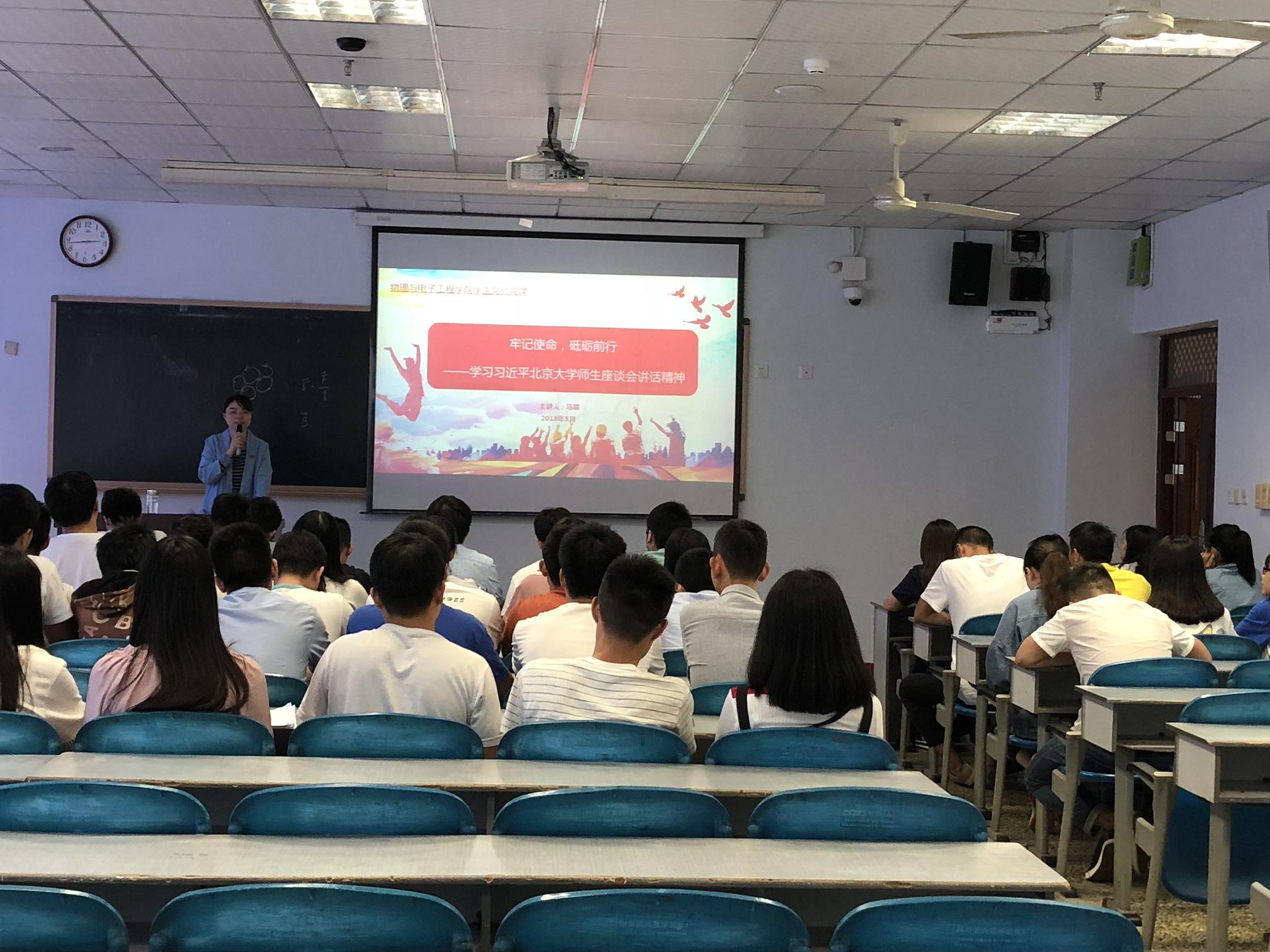 5月30日下午14点40分,物电学院党总支组织全体学生党员,在三教601教室开展了一次以“牢记使命,砥砺前行”为主题的党课学习活动。此次活动主要学习了习近平5月2日在北京大学师生座谈会上的讲话精神,由物电学院辅导员马翠老师担任主讲人。