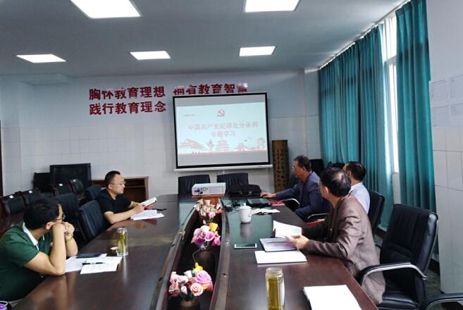 9月28日上午,教育科学学院党总支在本院会议室(艺术楼B座506)召开中心组理论学习扩大会,专题学习《中国共产党纪律处分条例》,总支委员、副科以上干部、党支部书记参加学习会。学习会由党总支书记杨随军主持。