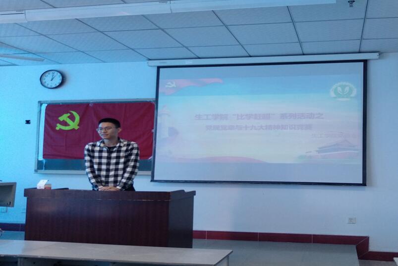 2018年10月26日中午12点40分,为深入贯彻落实“比学赶超”主题活动精神,使党员们进一步理清思路、明确目标与方向,生命科学与食品工程学院党总支在三楼604举办了以“比学赶超”为主题的知识竞赛。参赛对象为全体学生党员,比赛由吕东霖、龚云飞两位同志主持。