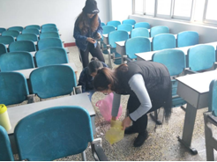 在骆雨欣同学进行总结后,我们一行人在704教室,拿出垃圾袋、抹布等清洁工具,成为一名临时志愿者,对教室进行美化,对课桌进行清洁,积极开展教室美化的志愿活动,一展志愿者风采。