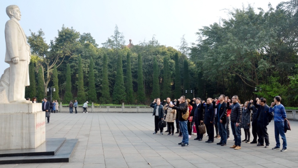 在李硕勋同志的雕像前,党员同志们在支部书记张国平的带领下重温了入党誓词。站在革命烈士面前宣誓,在庄严之中又多了几分震撼,更是一种终生难忘的经历。重温入党誓词,又一次提醒我们自己曾经作出的承诺,牢记党员的责任和义务。