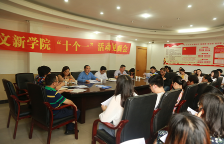 5月22日下午3点,为推进服务型基层党组织建设,实现基层党建工作的全面进步、全面过硬;抓好人才培养工作,加强师德师风建设,推进党建与人才培养深度融合,文学与新闻传媒学院在一教会议室开展了“十个一”活动见面会。