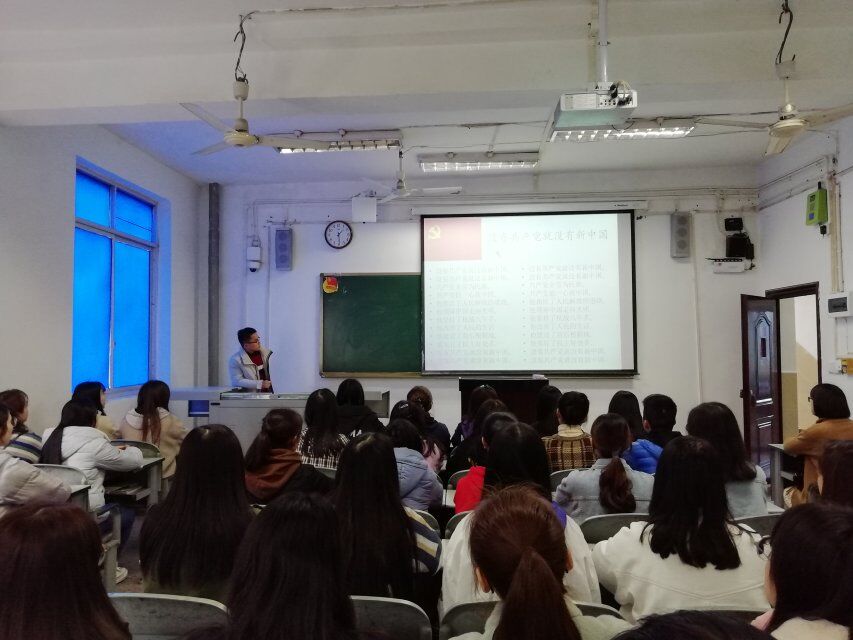2019年3月15日中午12点40,外国语学院第三十六期入党积极分子培训班学唱红歌活动在铭志楼411教室举行。本次活动由李美龙同学和彭越同学主持并教学。