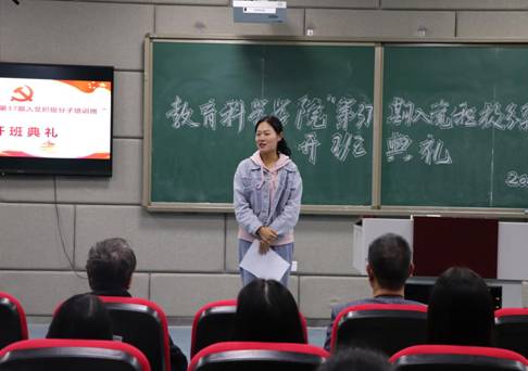 书记赵政一、培训班班主任贺岷、学前教育支部书记沈文静、小学教育支部书记李伟、应用心理学支部负责人刘新与第37期入党积极分子培训班全体学员参加了开班典礼。沈文静主持开班典礼