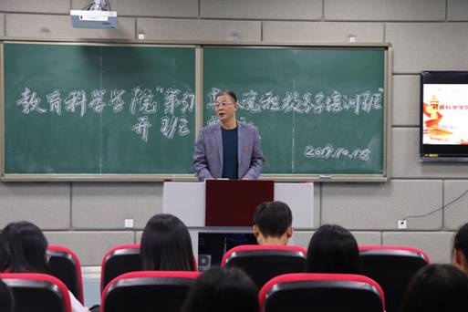 为贯彻落实党的十九大精神,认真开展“不忘初心、牢记使命”主题教育,2019年10月16日16:30,宜宾学院第37期入党积极分子教育科学学院培训班在艺术楼B座201室正式开班。党总支副