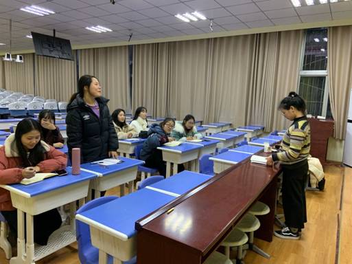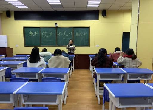 2019年12月18日晚,教育科学学院小学教育甘洛支教党小组于甘洛城关小学会议室开展了“学员如何联系人民群众”专题党课,此次党课由教育科学学院甘洛支教党小组长陈雯雯组织开展,小学教育甘洛支教党小组全体同志参加了此次党课活动。