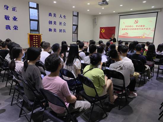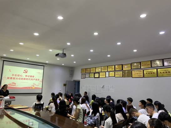 宜宾学院美术与艺术设计学院学生支部于2020年7月2日19:00在B区学术报告厅举行了以“不忘初心、牢记使命,做勇担大任的新时代共产党员”为主题的党日活动,会议由学生支部书记张蕾老师主持,美艺学院全体毕业生党员参加。