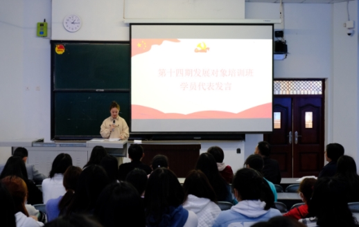 接下来,邱军就本期发展对象培训班有关情况作说明,要求大家珍惜培训机会、刻苦认真学习、严格遵规守纪、端正入党动机、争取优异成绩,并在结业考试中坚决做到诚信应考。培训班学员代表18级3班张明玉同学分享了自己学习党史的心得体会并表态要认真参加培训班的学习。最后,全体学员共同观看电视片《国家记忆:致敬英烈——赤胆英雄赵一曼》。