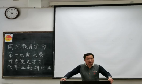 2021年3月30日中午,党校第十四期发展对象培训班国际教育学部学员在铭志楼305和308教室开展了以“党史学习教育”为主题的理论研讨课。国际教育学部正处级组织员袁成钢和党总支副书记林顺虎为学员们进行了指导。